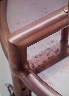 E-1027 という不思議な記号のような名のテーブル。ベッドサイドテーブルとしてデザインされた。実際ベッドサイドではとても使いやすいし、どこに置いても美しく且つ機能的。溶接までみとれてしまう。 右は、アイリーンが設計した自邸「E-1027」のベッドルームの写真。
