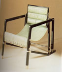 その少し後に、担当した個人邸で、トランザット・チェアの実物を初めて見た。トランザットチェアは、1920年代後半に北インドのマハラジャ宮殿のためにアイリーンG.がデザインした美しいチェア。世界的なインテリアデザイナーのアンドレ・プットマン Andree Putmanは、リスペクトするデザイナーの家具や照明器具などを復刻させており、その一つがアイリーン・グレイ Eileen Gray で、プットマン自身もオフィスや自邸で使っている。写真右の曲線的なラインが美しいビベンダムチェア Bibendumchair も代表作。世界的に復刻されている。アンドレ・プットマン Andrre Putman が1978年にパリに創立 したエカール Ecart International のオフィスにアイリーングレイの家具やラグなど多く置かれていた。私は1990年に出張でうかがう機会を得た。忘れられない素敵なオフィス&ショールームだった。今はない。写真右/エカールのショールームにディスプレイされる水槽の向こうにアイリーン・グレイのトランザットチェアに座るかっこいいプットマン。エカール Ecart ではアイリーン・グレイ Eileen Gray はじめ、ジャン・ミッシェル・フランク Jean-Michel Frank、マレ・ステヴァン、オーブレ、Fortunyなど多くのデザイナーの家具などリプロデュース復刻していた。