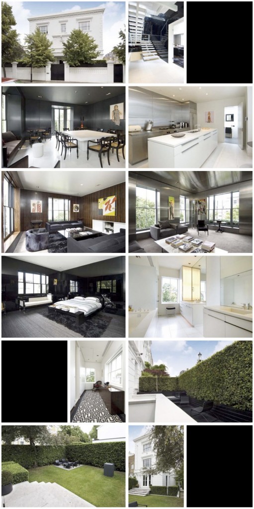 イームズ、 ジャン・ミッシェル・フランク、 ミース・ファン・デル・ローエ、 フローレンス・ノールなどヴィンテージも多くコレクションし, アートも多く所有し、LONDONの家の写真にはないが, A.ウォーホールの'shadow'など所有アートのセンスも印象的。LONDONの家。数件所有するうちの一つ。