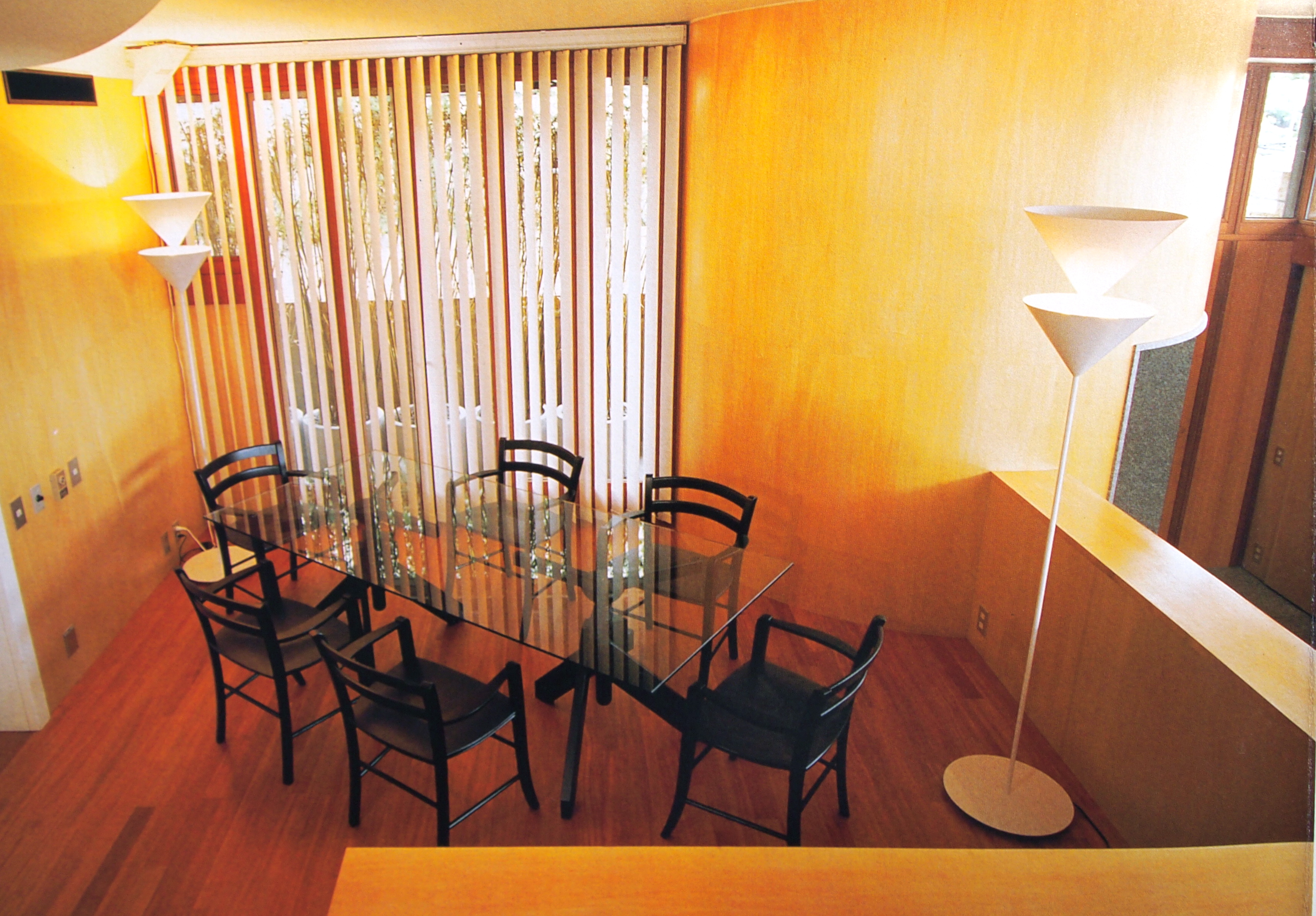 28年前マジストレッティ設計デザインの住宅TANIMOTO邸の納品現場の写真。ラグもすべてマジストレッティの指示で。大きな住宅の一部。余談ですが、マジストレッティからは「カーテンなど付けるな」という指示もありました。渋々、「麻ならいい(仕方ない)」となりましたが、指定してきた麻リネンはソファにも張る厚手のもの。施主から嫌がられ、カーテンとしてかなり重いので取り付けに苦労しました。ダイニングルームは当時新作だった和紙のブラインドを提案し許可をいただきました。ヴィコ・マジストレッティ Vico Magistretti 生前ご自身ご自宅。1枚の写真からも一流のセンスの多くがみえる。一流の意外性は美しい。いつだって新しい時代を超えるものをみたい。どこも情報を追いかけ集めるものばかりで新しいものは極めて少ないから。