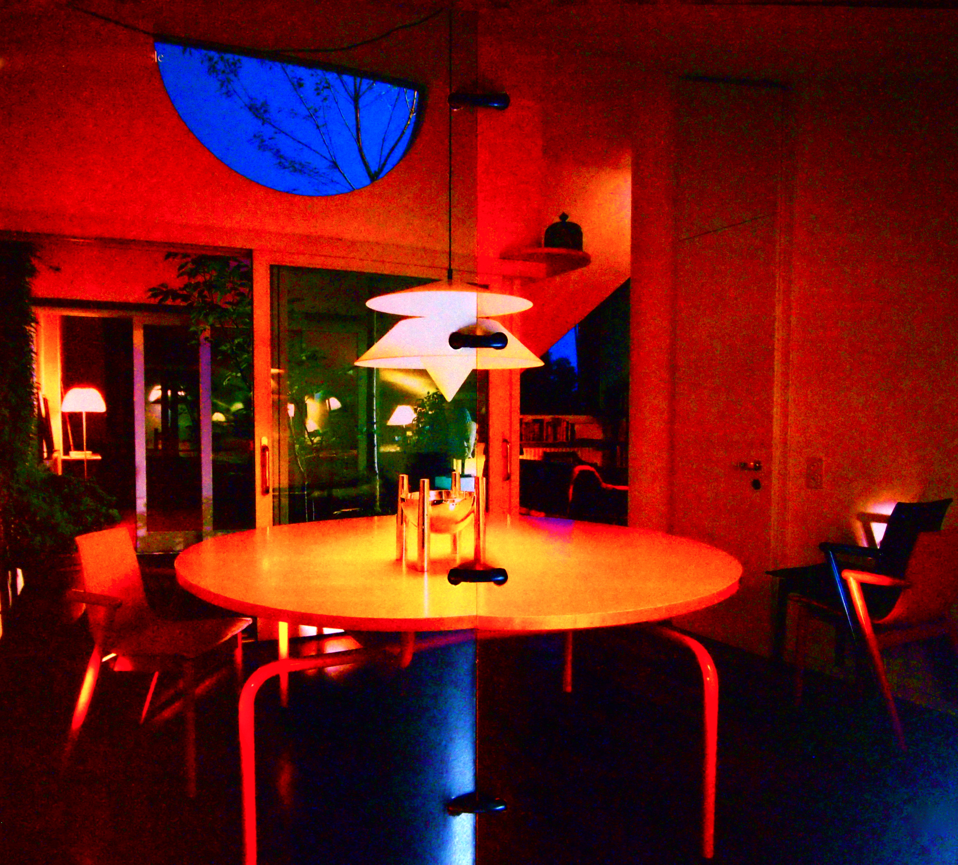 自宅のカスティリオーニの家具自慢。デパドヴァ社のフォールディングテーブル、チェリー材も気に入っている。シェーカースタイルを現代にリデザインしたシンプル機能的な美しさの極み。気づいたら、カスティリオーニのデザインの家具やプロダクトも多く所有していること改めて気づく、照明や家具や食器など。どんな空間にも溶け込む優れたデザイン、贅沢だけど日用品。自宅のカスティリオーニのデザインの照明器具 自慢。今年初めの大雪の美しい日の蒼い光にスチロス という照明器具の光が反射して。もう30年も見続けてきたが毎日飽きることない。どんな時も幻想的な光をみせてくれる。人の心のようにやさしい。リビングの一角。ごちゃごちゃと好きなものが集まってる私的な場所。